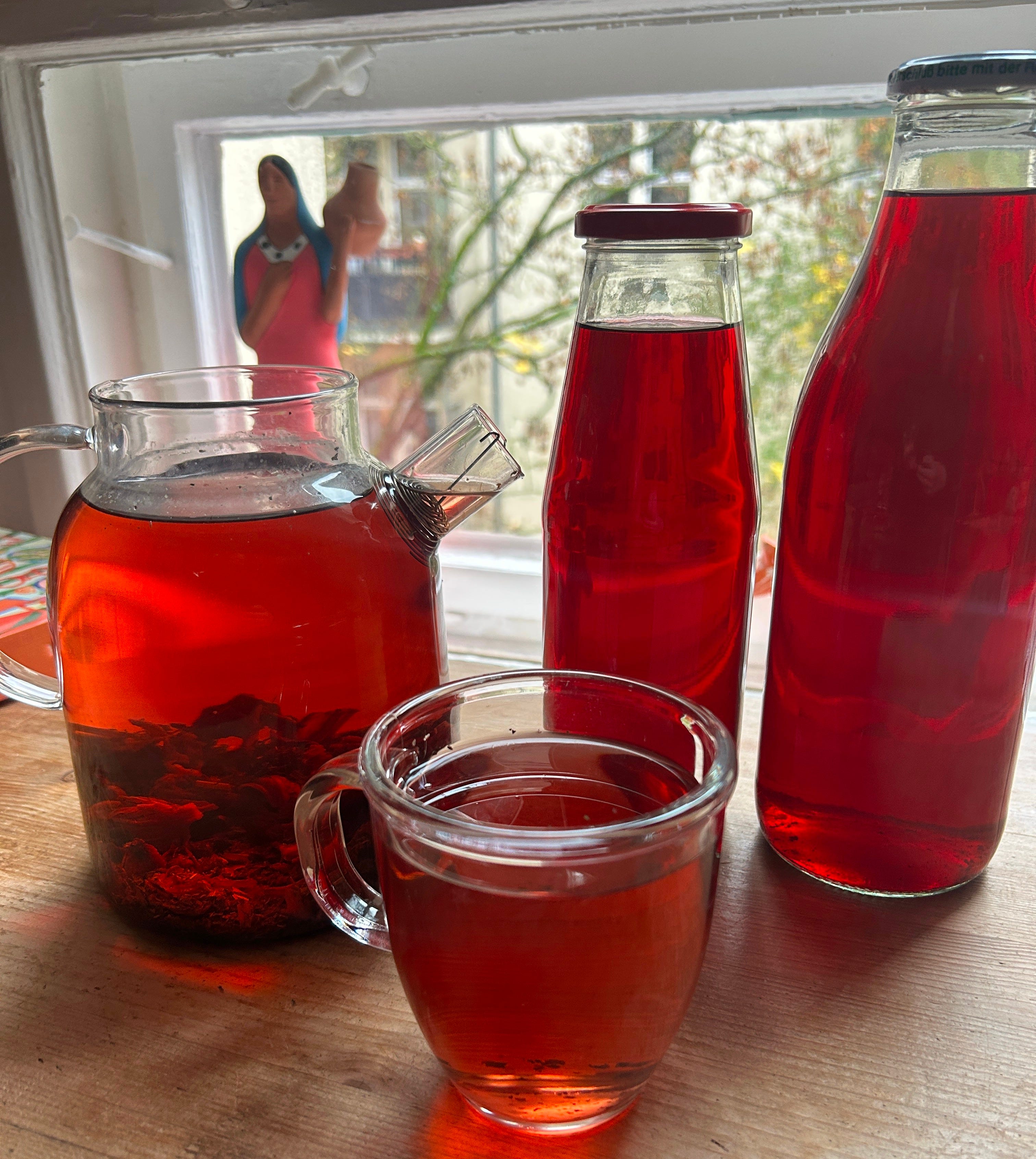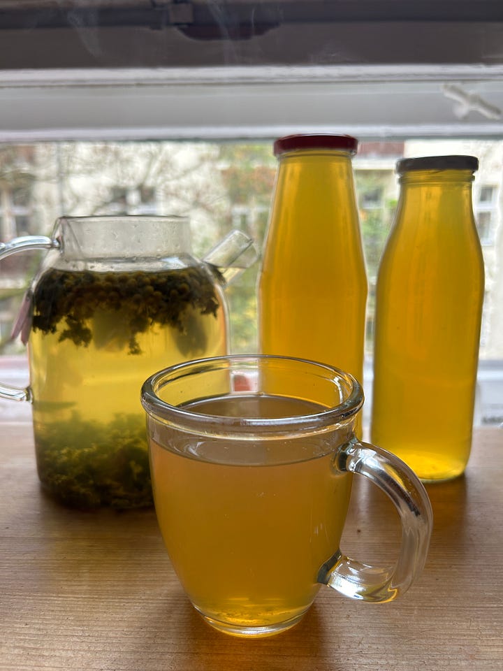 A few summers ago, I started brewing herbal teas and making big batches to keep in the fridge. When it’s warm, I particularly love iced lemon verbena with lemon balm. I’ve kept up the habit, even though in winter I don’t store the tea in the fridge. Last week, I made a batch of oat straw, nettle, hibiscus, and rose hip tea. This week, it was chamomile, raspberry leaf, and fennel anise seed. Drinking cold or room-temperature herbal tea feels deeply more hydrating than plain old water. Plus, I have to believe that all those herbs are doing a great job at adding minerals and nutrients to my system. And I do love the color of hibiscus.